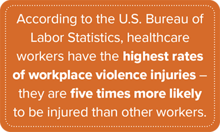 Did you know that the prevalence of workplace violence in healthcare is higher than in most other professions? Healthcare workers here in Rhode Island and throughout the country are increasingly subject to threats, verbal and physical abuse, and other violent behavior as they simply try to do their jobs.